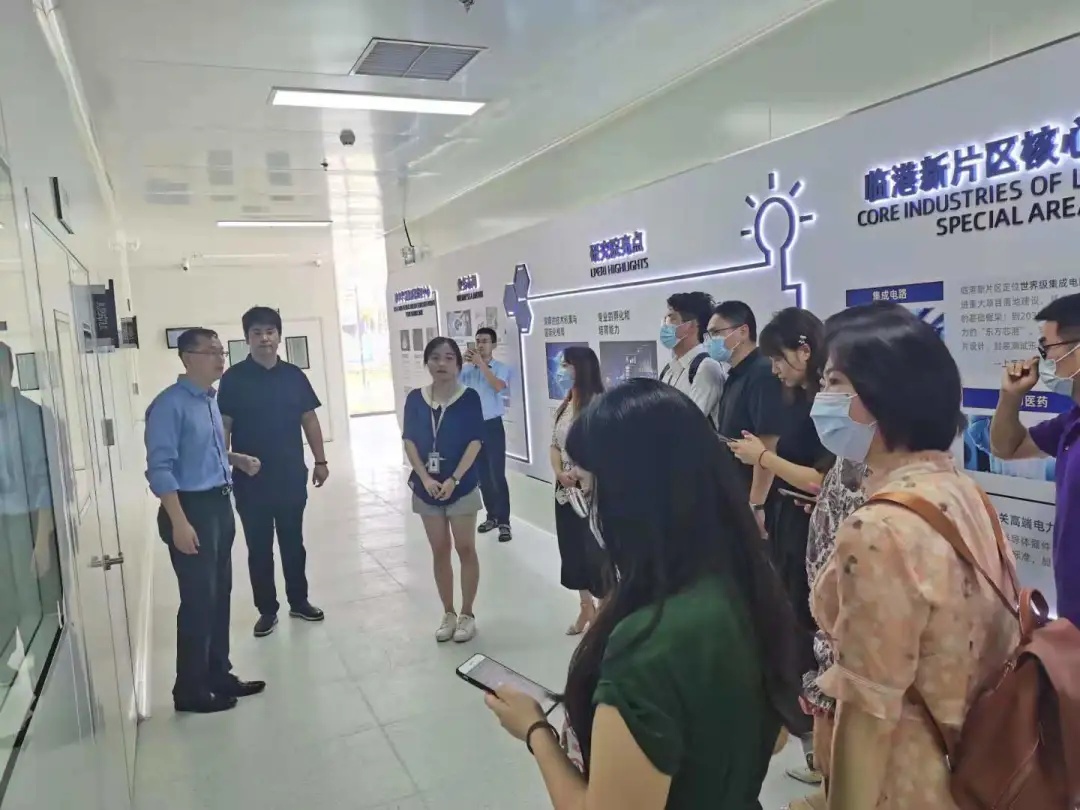 自貿區臨港新片區管委會高新產業和科技創新處副處長孫筱和、倪曉杰一行蒞臨上海臨港電力電子研究院走訪考察