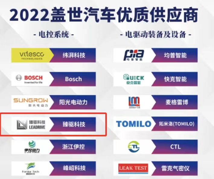 臻驅科技榮膺蓋世汽車「電控系統優質供應商」稱號